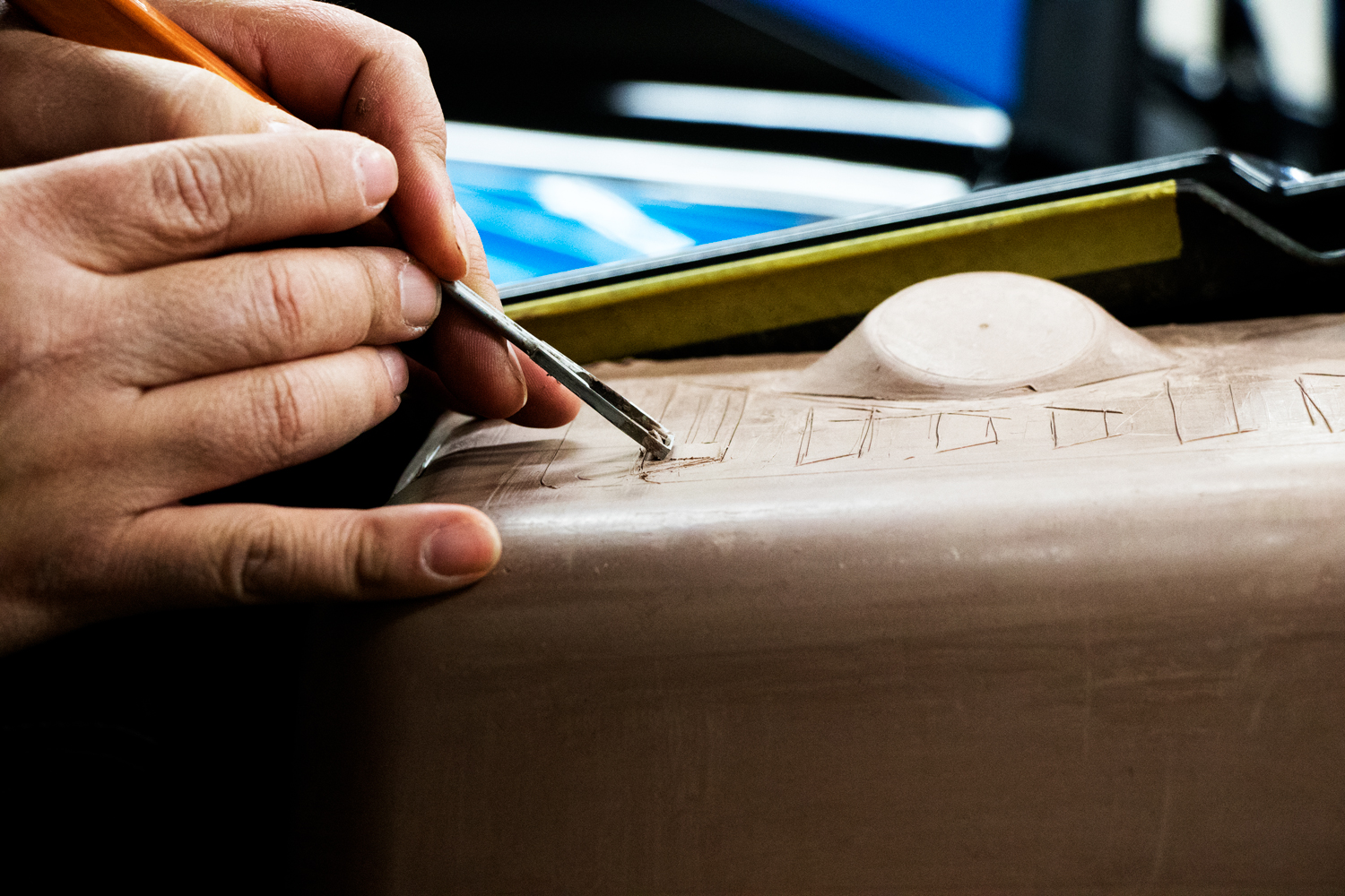 フィルターケース、チャンバーボックスや導入ダクトなどの設計は吸気の流れや効率を考慮しながら決定します。データのみに囚われることなく、感性に訴える形状とするため、ハンドメイドの手法も取り入れいます。