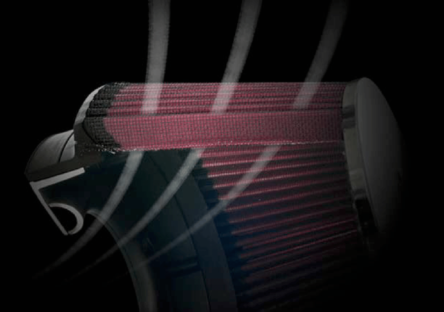 高性能エンジンのリクエストに応え、吸入効率と濾過性能の高次元におけるバランスを実現するハイフロー・スポーツクリーナー。独自のフィルターデザインコンセプトに基づき一定のテーパー角をとり、ひだを深くとったアコーディオン形状の最適化を図ることで、外寸の5倍以上の表面積を持つハイフロータイプとしています。強力な吸入負圧や熱による歪みを抑え、フィルタリングキャパシティを向上させることにより、大容量、高負荷連続吸気を実現しています。取り付けは、車種専用設計フィッティングアダプターによりボルトオン。